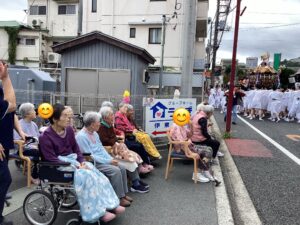 施設前をみこし・山車が通り、その迫力にとても盛り上がっておりました。
