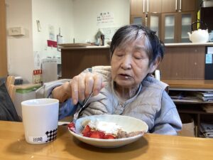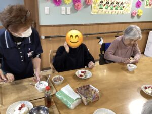 ご入居者様にはトッピングを好きなだけのせてもらい、会話をはずませながら盛り付けを楽しんでおりました。