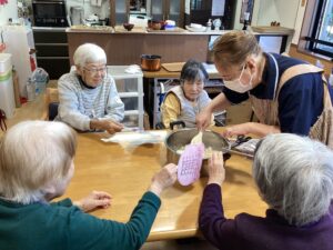 専門的なリハビリは行うことはできません。グループホームでは家事や散歩などの日常生活上の動作全てを「生活リハビリ」としています。基本的にご自分でできることはやっていただきスタッフがサポートいたします。